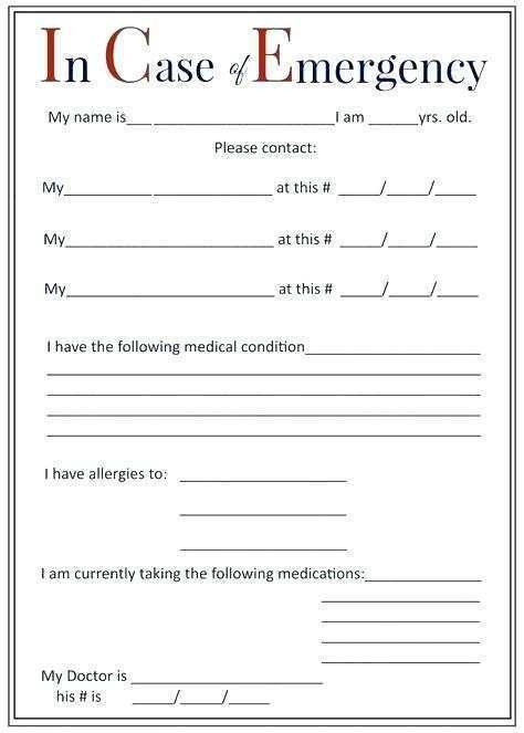 65 Standard Free Printable Emergency Card Template In Word With Free