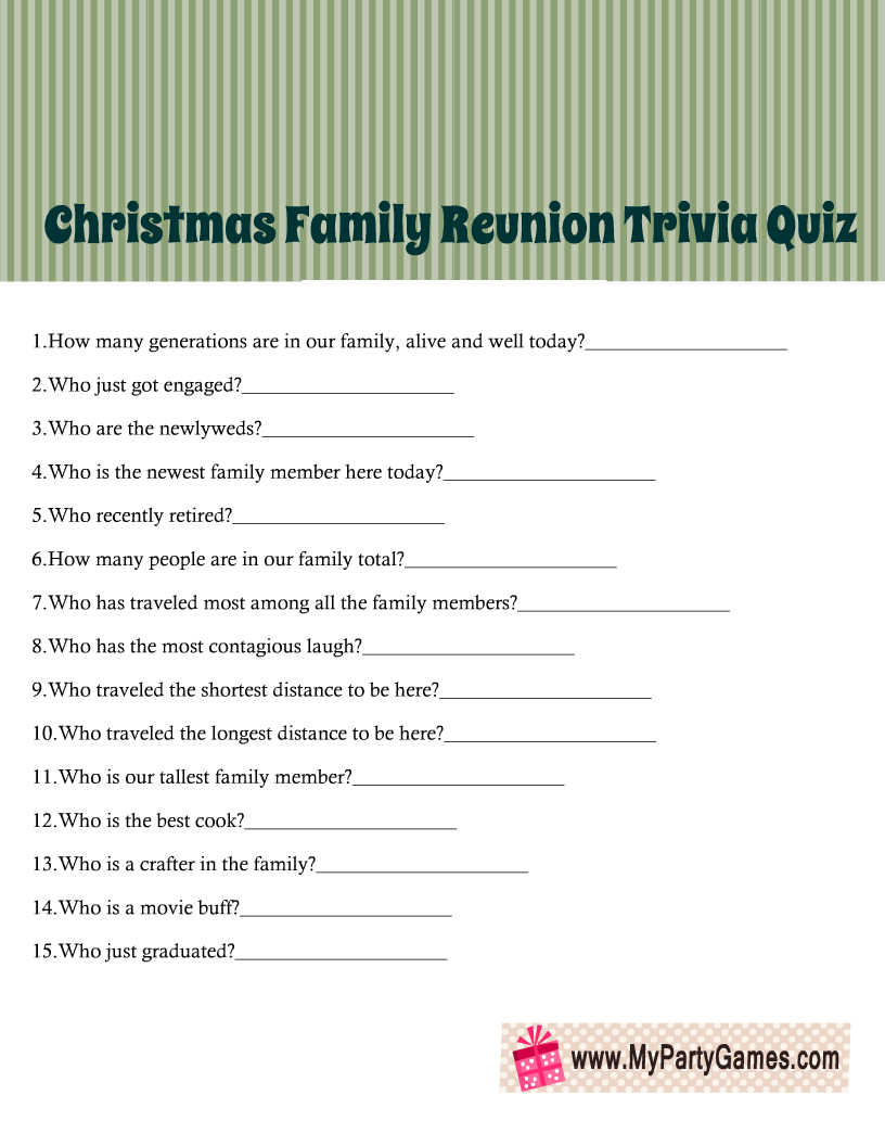 Whether you’re looking for a low-key activity to enjoy on a weeknight or planning a special family gathering, free printable family trivia games are a great option for bringing your loved ones together. So gather your family members, print out a trivia game, and get ready to test your knowledge and create lasting memories with those you hold dear.