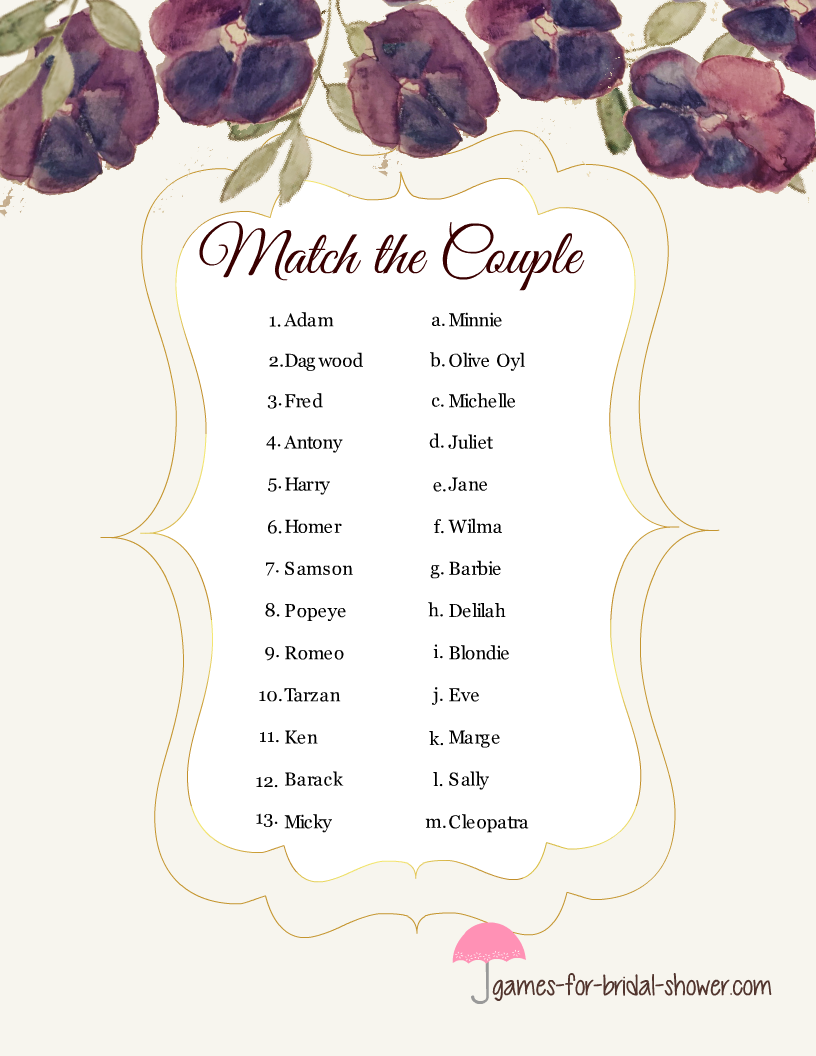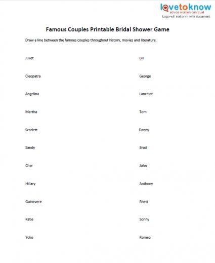 Free Printable Famous Couples Bridal Shower Games
