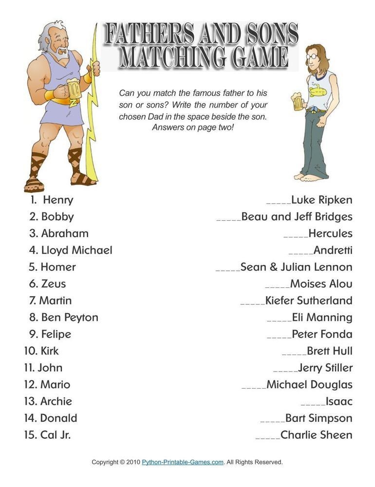 4. Dad and Me Matching Game: Create a set of cards with pictures of famous father-child duos, such as Darth Vader and Luke Skywalker or Mufasa and Simba. Have participants match the father with their child for a fun and interactive game that celebrates the bond between dads and their kids.