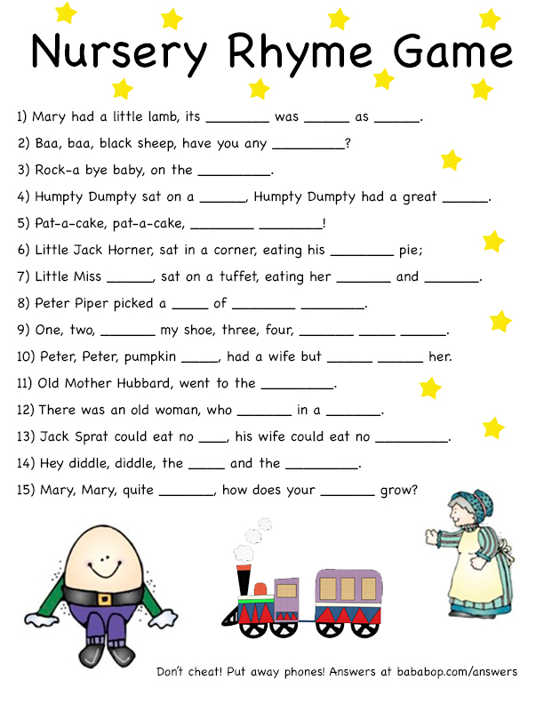 So why wait? Download our printable fill in the blank nursery rhyme game today and let the fun begin!