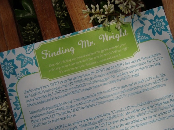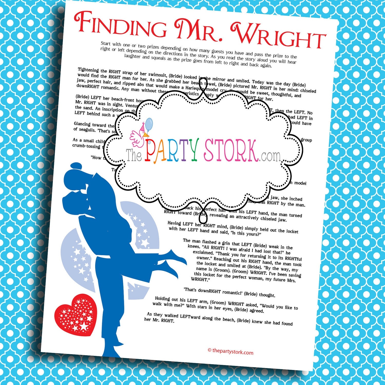 Bridal Shower Game Printable Finding Mr Right Left MANY DESIGN CHOICES