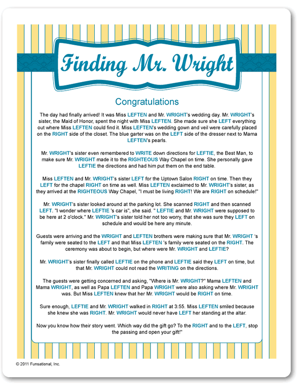 BRIDAL SHOWER LEFT RIGHT MR WRIGHT ENVELOPE PASS GAME GREAT FUN ICE