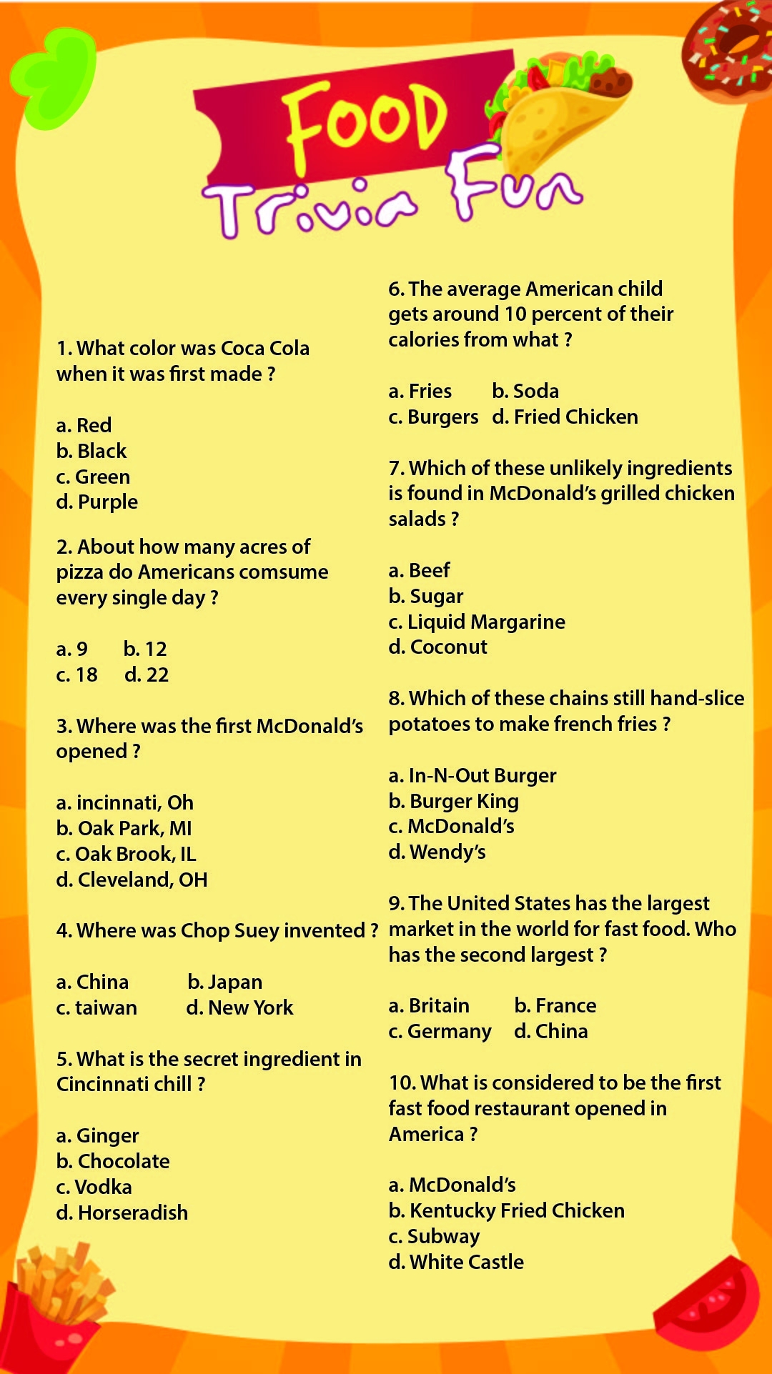 Printable Food Trivia Games Download For Instant Fun Edit Download