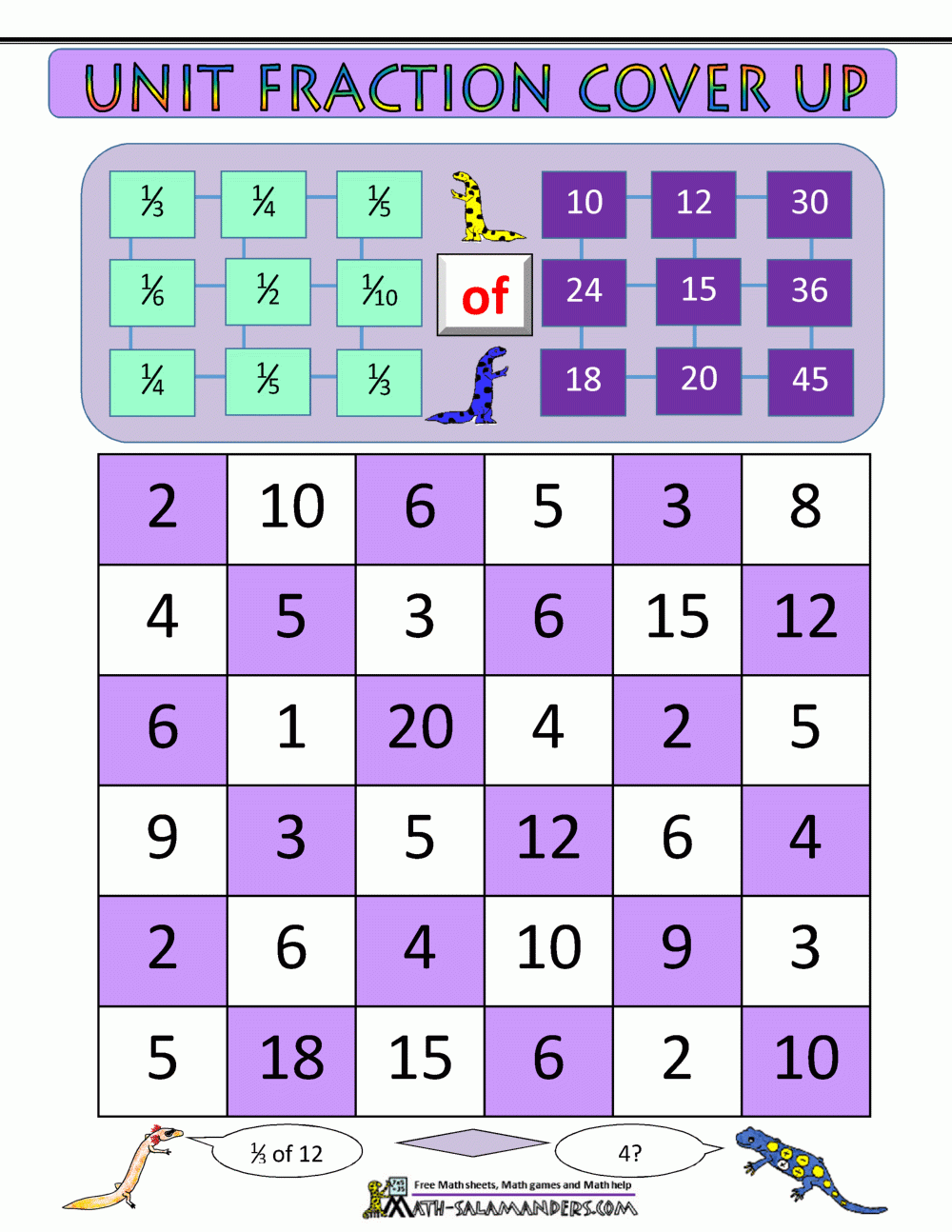 Free Printable Fraction Games for 4th Grade
