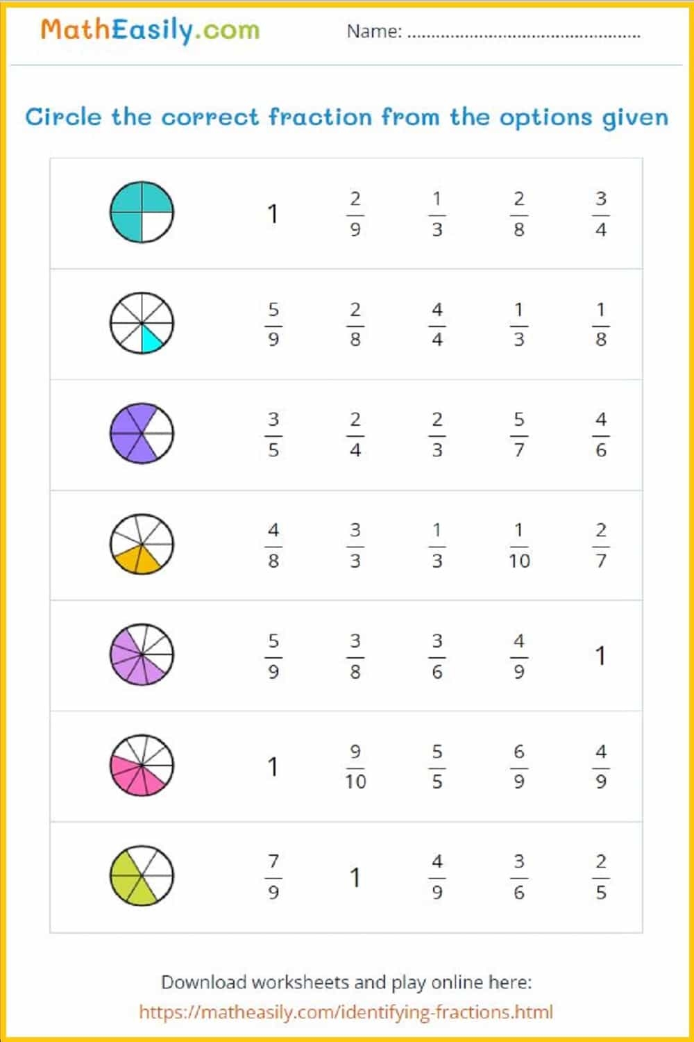 Free Printable Fraction Games for Grade 4