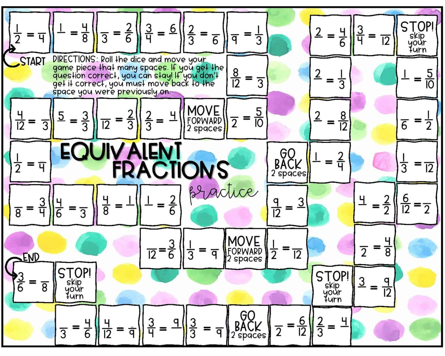 4. Fraction Board Games: Print out board games that involve fractions, such as Fraction Snakes and Ladders or Fraction Race. Students can move their game pieces along the board by correctly solving fraction problems. This interactive game makes learning fractions enjoyable and competitive.