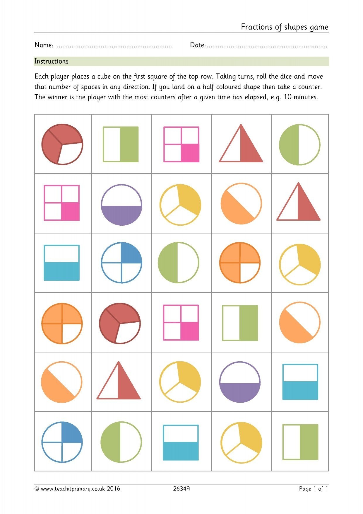 Free Printable Fraction Games Printable World Holiday