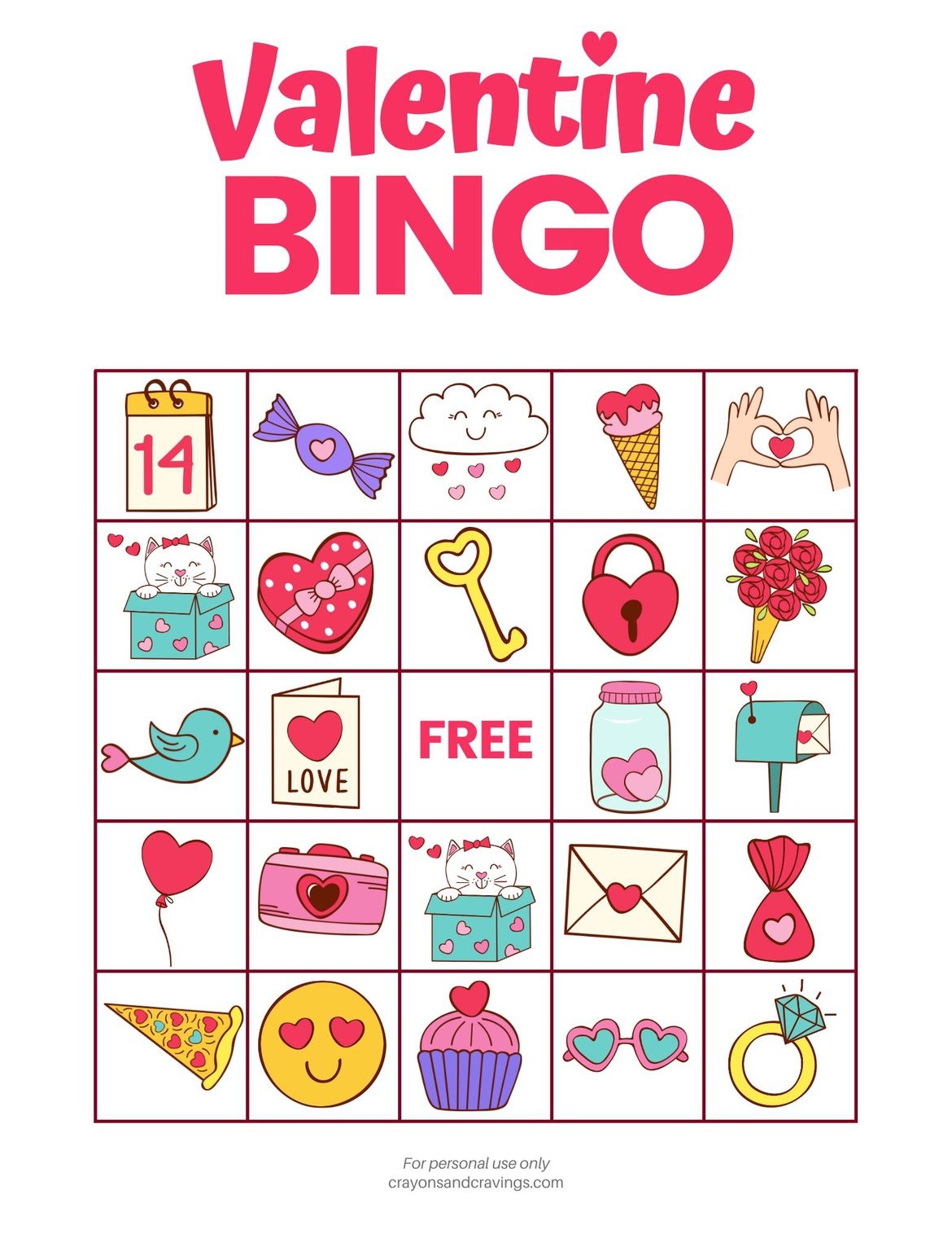 Free Printable Valentines Bingo