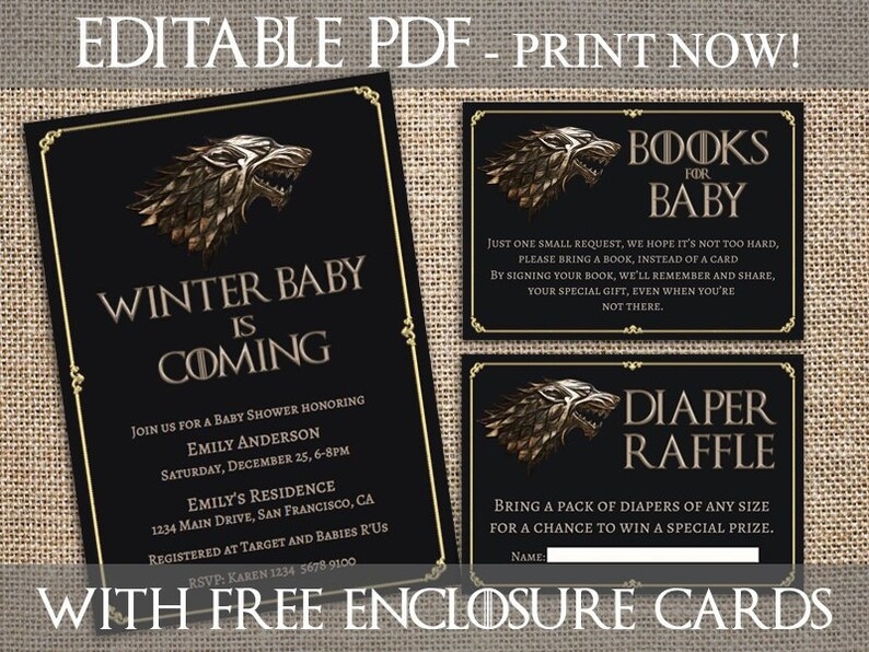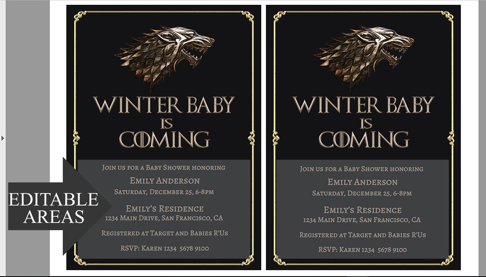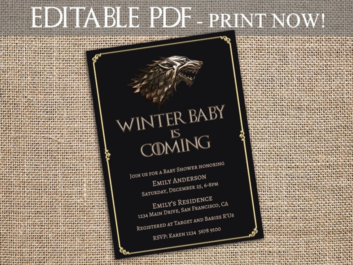 Game Of Thrones Invitation Template Baby Shower Cards Etsy
