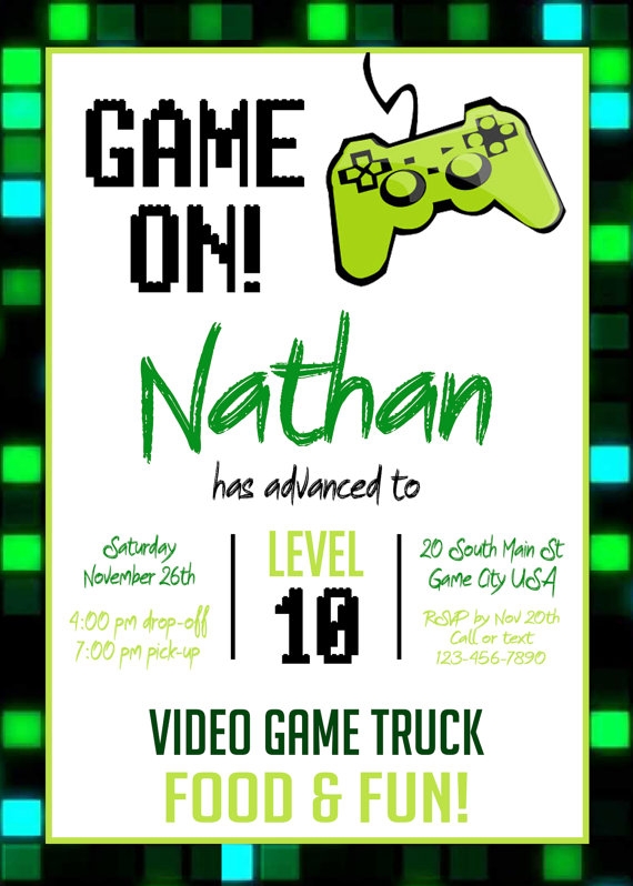 Video Game Invitation Game Truck Party Invitations Video Game Party