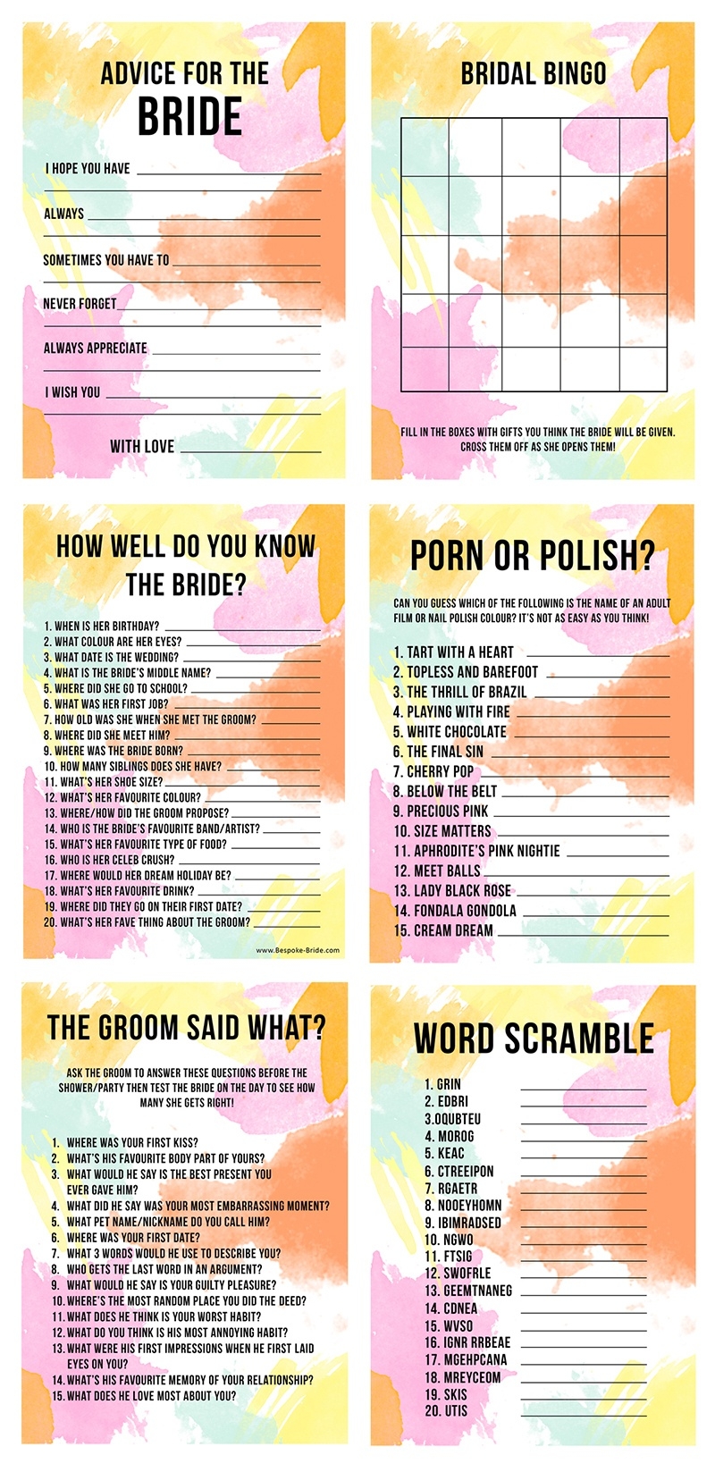Bachelorette Party Games Free Printable FREE Printable A Z