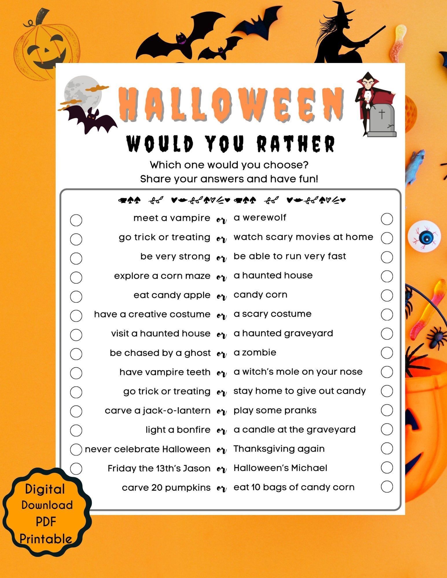 Another fun printable game for Halloween is a “guess the candy” game. Players are given a list of clues describing different types of Halloween candy, and they have to guess the candy based on the clues. This game is a great way to test your knowledge of Halloween treats and can be a fun icebreaker for a Halloween gathering.