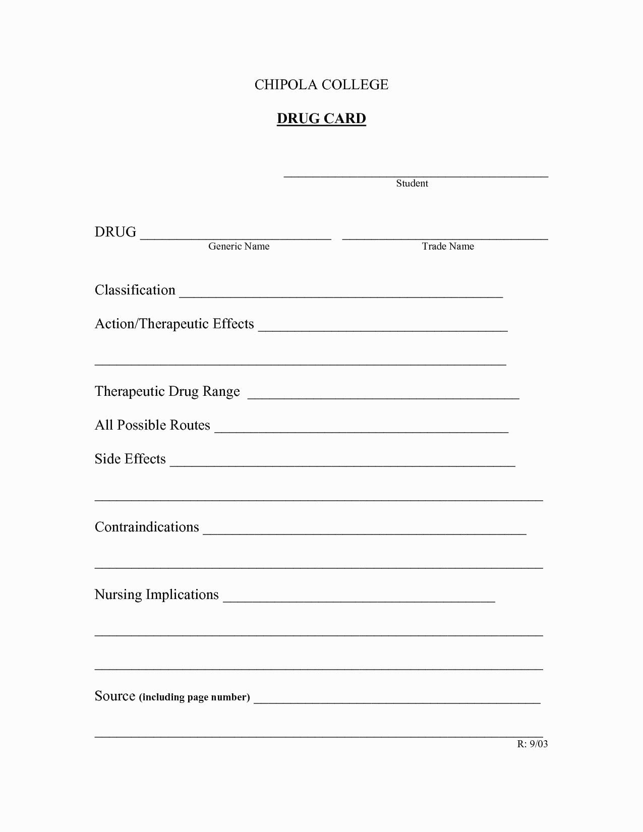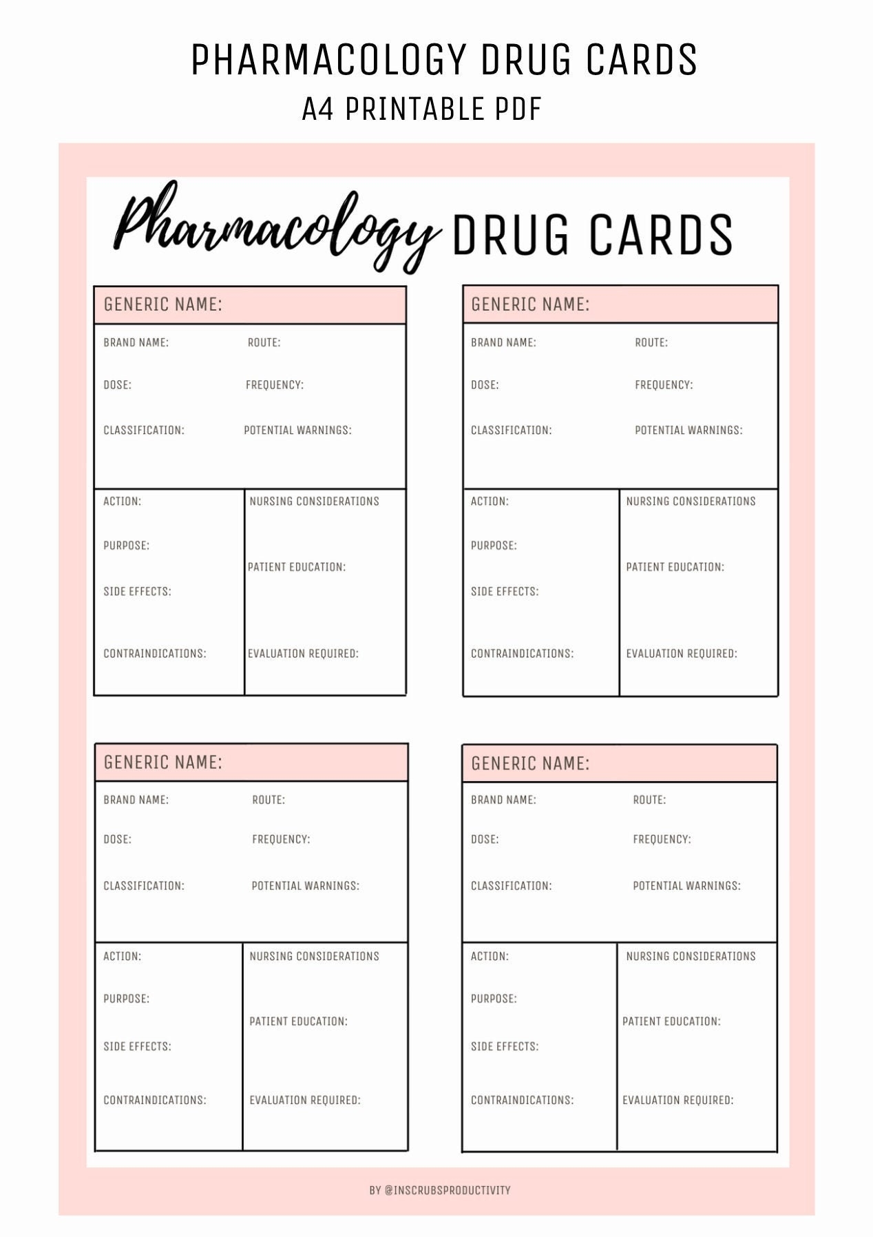 Free Printable Pharmacology Drug Card Template
