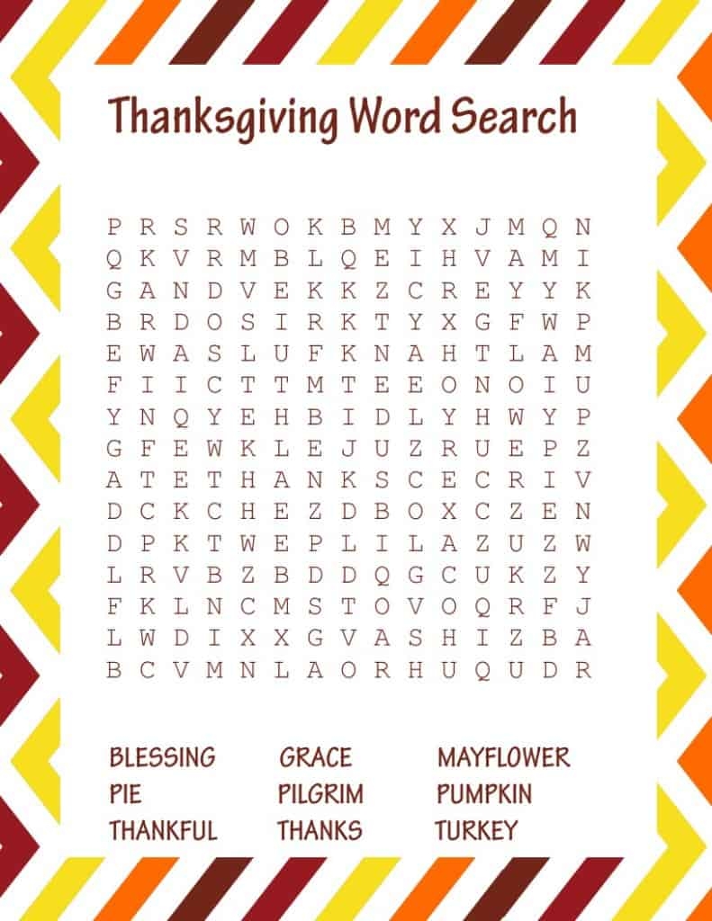 2. Word Searches: Thanksgiving-themed word searches are a great way to challenge older children and improve their vocabulary. You can find printable word search puzzles with words like “pilgrim,” “cornucopia,” and “cranberry sauce.” Kids will have a blast searching for the hidden words.