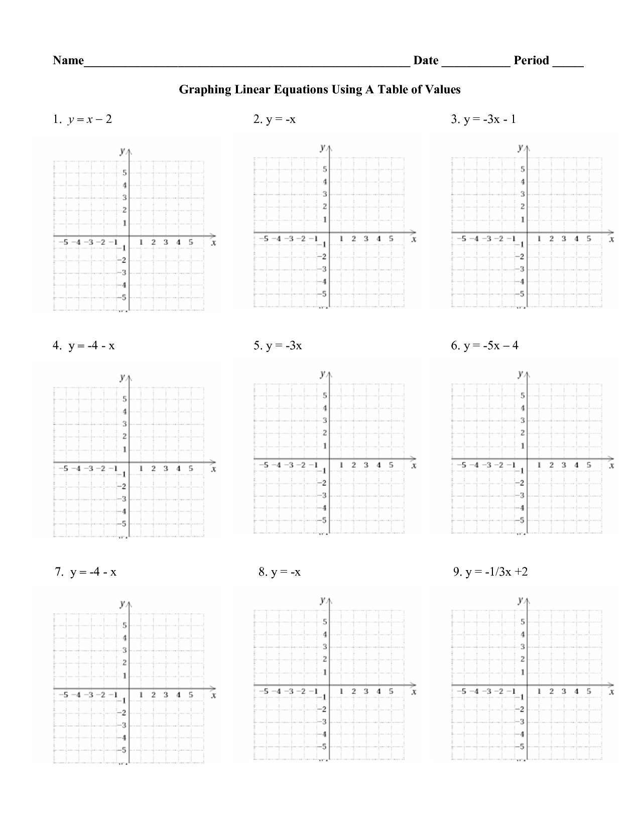 Graphing Linear Equations Table Of Values Worksheet Equations Worksheets
