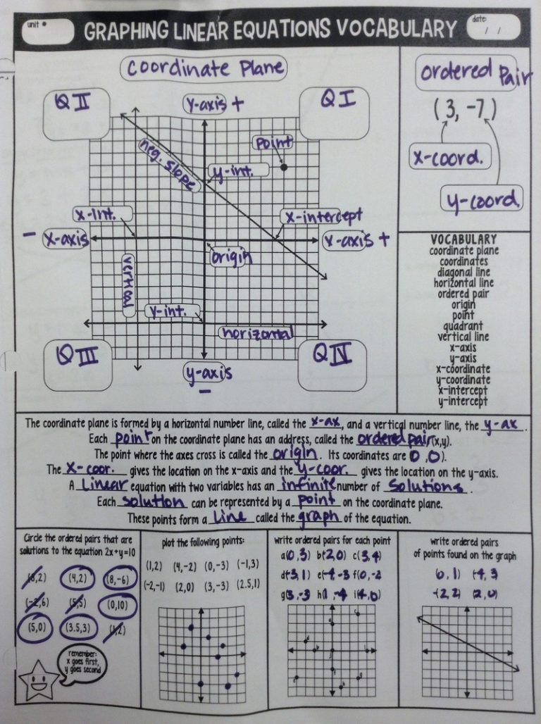 Graphing Linear Equations Vocabulary Worksheet Answer Key Db excel