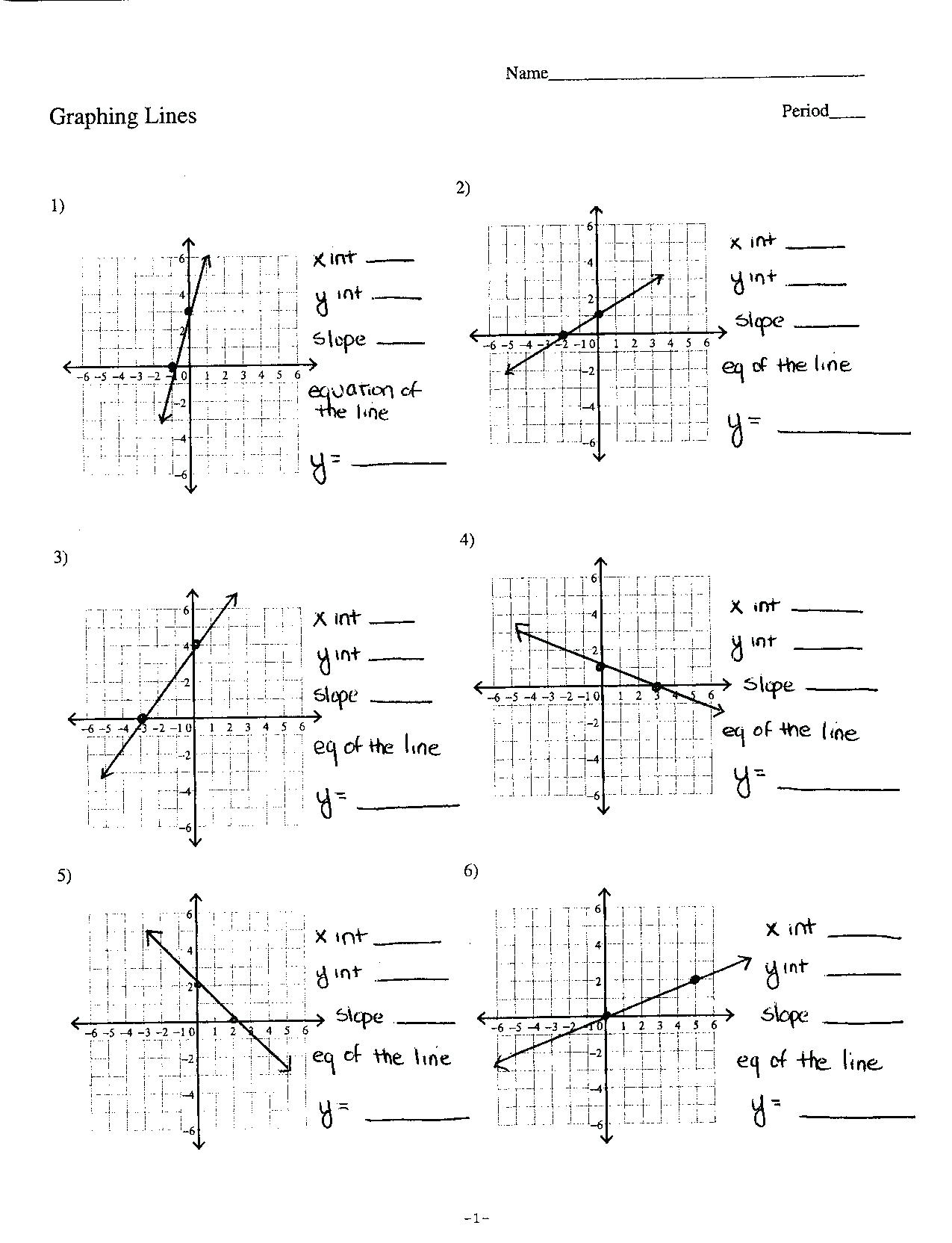 Graphing Linear Equations Worksheet With Answer Key