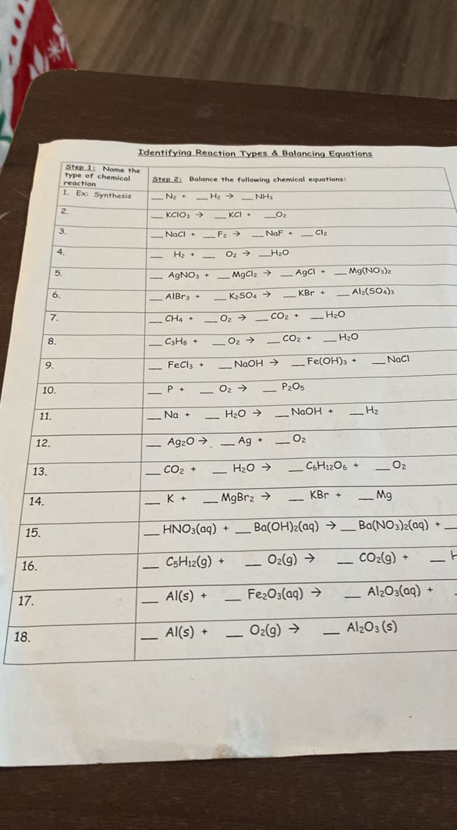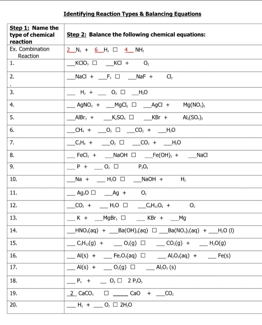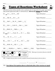 Identifying Reaction Types and Balancing Equations Worksheet