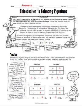 Introduction To Balancing Chemical Equations Worksheet By Adventures In