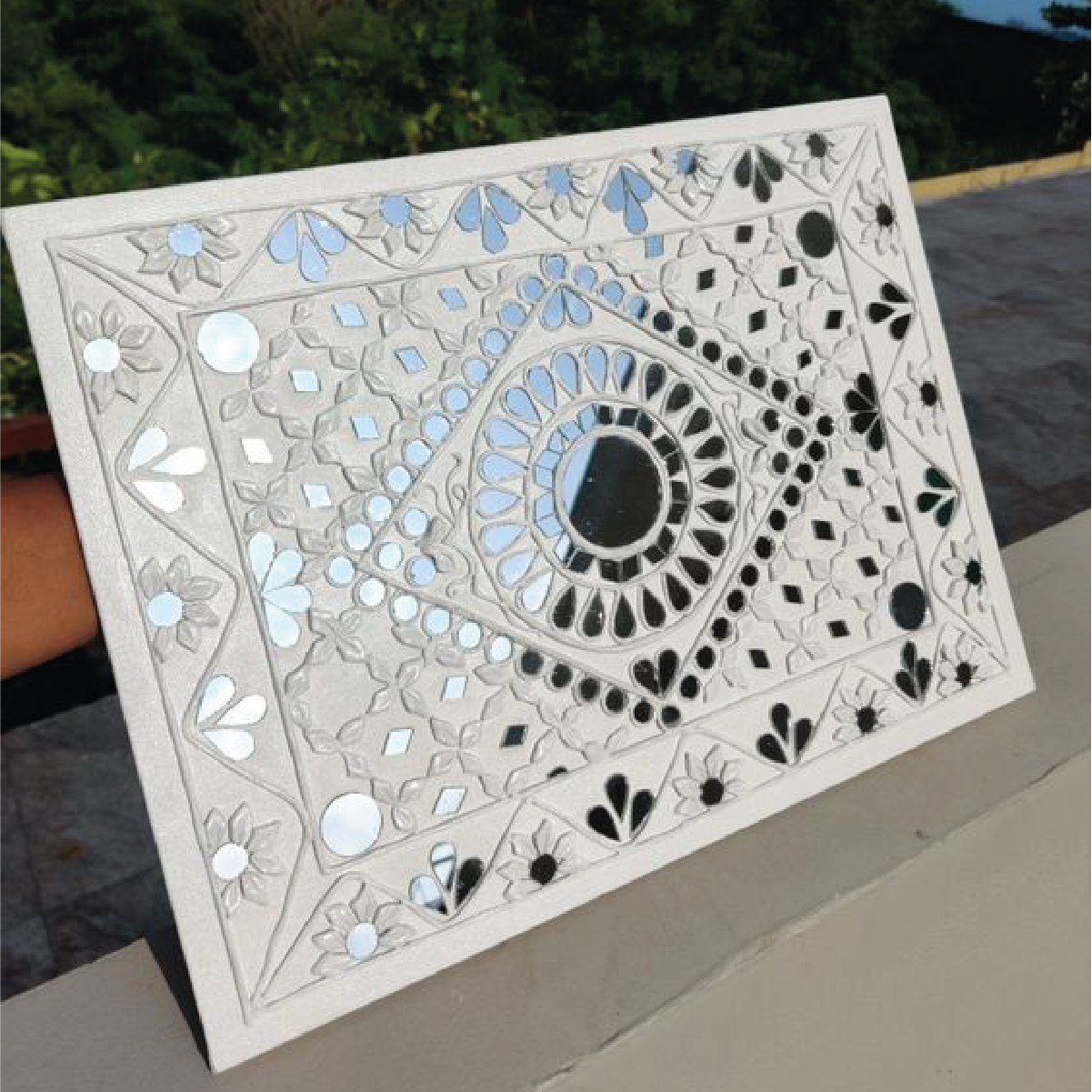 Lippan art, also known as mud-mirror work, is a traditional art form originating from the Kutch region of Gujarat, India. This intricate art form involves creating stunning designs using a mixture of mud, cow dung, and small mirrors. The end result is a mesmerizing display of patterns and motifs that reflect the rich cultural heritage of the region.