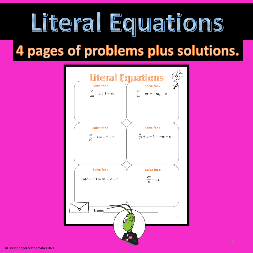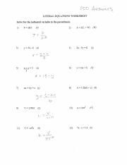 Literal Equation Worksheet