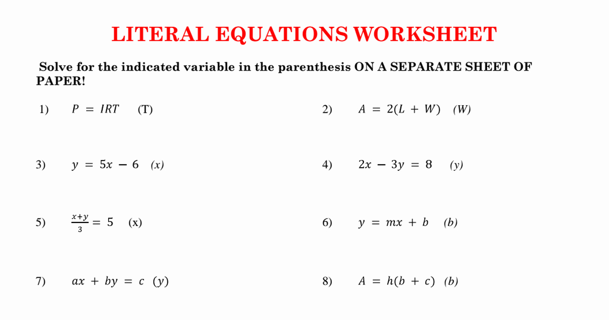 One way to practice and reinforce the concepts related to literal equations and formulas is through worksheets. These worksheets typically contain a variety of problems that require students to solve for a specific variable in terms of other variables. By working through these exercises, students can improve their problem-solving skills and deepen their understanding of algebraic relationships.