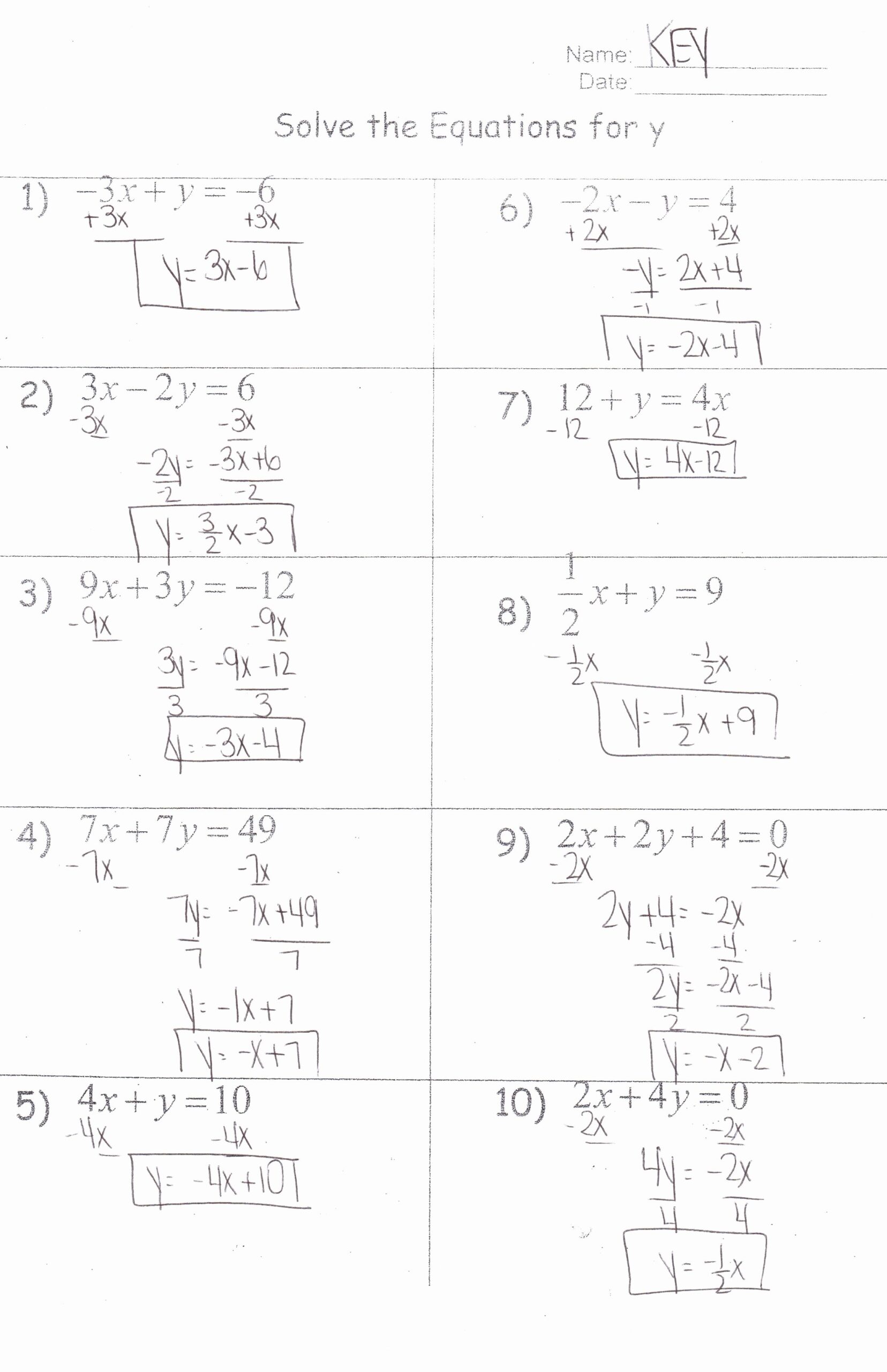 Literal Equations Worksheet Answer Key