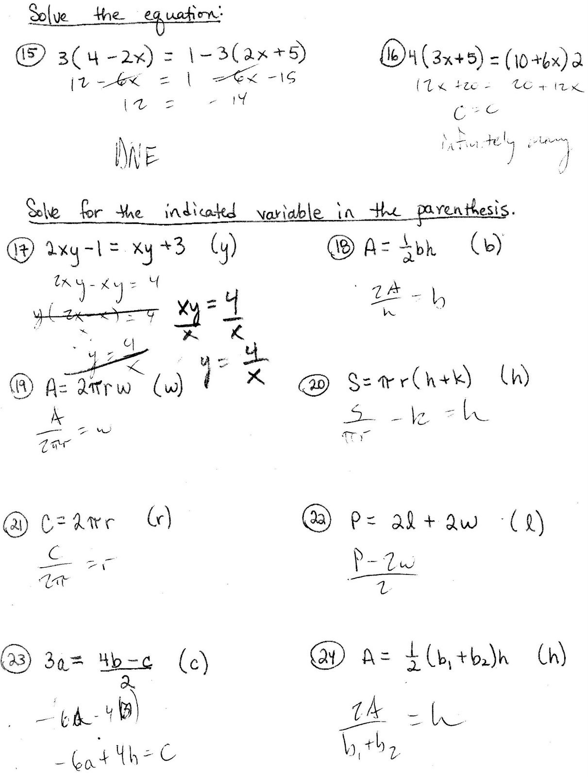 Literal Equations Worksheet with Answers PDF