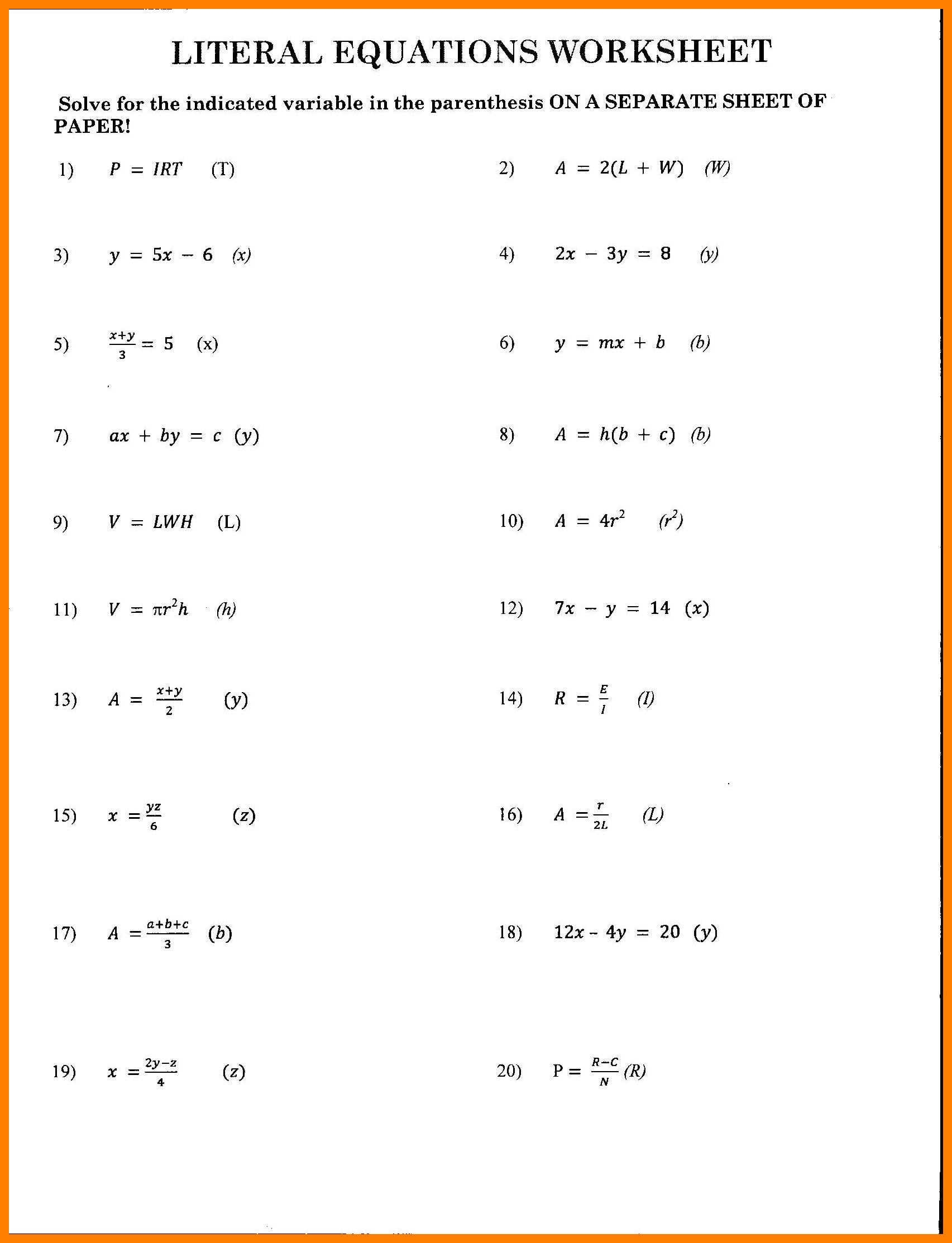 Literal equations are equations in which variables represent known values. These equations can be quite challenging for students as they require a deep understanding of algebraic concepts. One way to practice solving literal equations is through worksheets that provide various problems for students to work on.