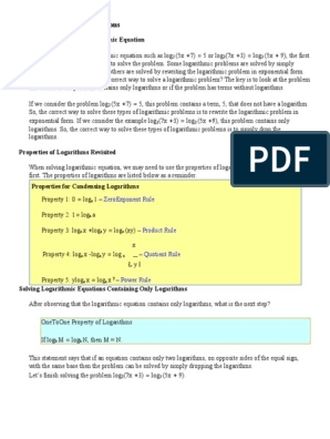 Logarithmic equation worksheets typically consist of a series of problems that require students to solve for the unknown variable using logarithmic properties and rules. These problems can range from simple logarithmic equations to more complex ones that involve multiple steps and techniques to solve. By working through these worksheets, students can build their confidence and competence in solving logarithmic equations.