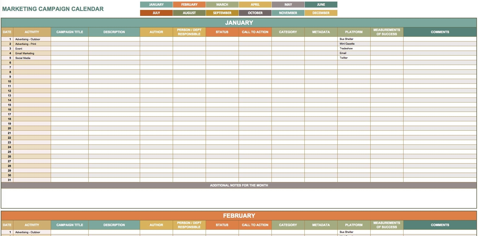 Marketing Plan Template Excel