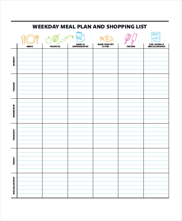 Meal Plan Grocery List Template