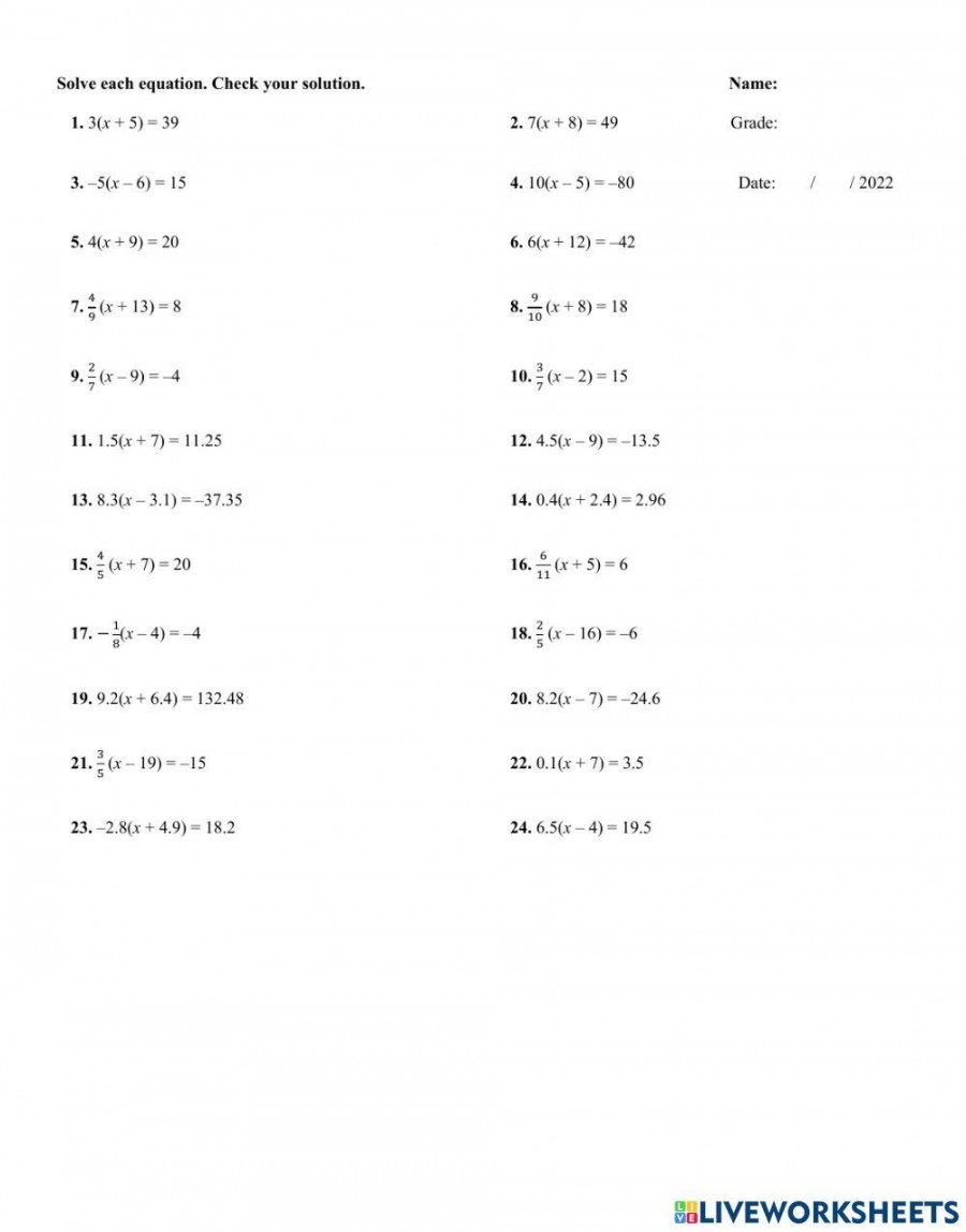 As students work through a multi step algebraic equations worksheet, they will encounter a variety of problem types and scenarios. Some problems may require them to clear fractions or decimals, while others may involve variables on both sides of the equation. By practicing these different types of problems, students can build their problem-solving skills and gain confidence in their ability to tackle challenging algebraic equations.