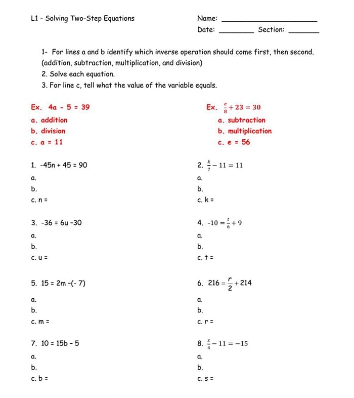 Multi Step Equation Worksheets