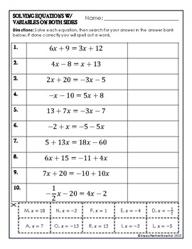By providing students with worksheets that contain a variety of multi-step equations with variables on both sides, teachers can help reinforce the concepts learned in class and give students the opportunity to practice solving these types of equations on their own. These worksheets can also be used as homework assignments or as extra practice for students who may be struggling with this concept.