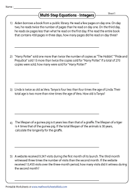Multi Step Equations Word Problems Worksheet Pdf With Answers