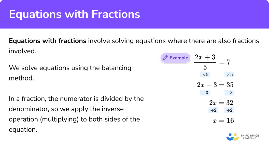 Equations With Fractions GCSE Maths Steps Examples Worksheets