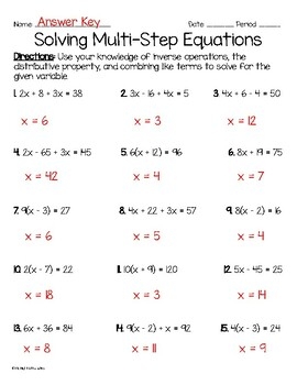 Multi Step Equations Worksheet 8th Grade Equations Worksheets