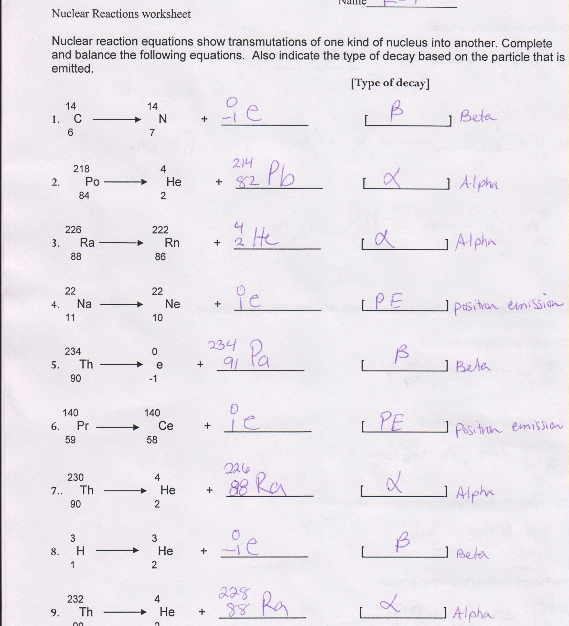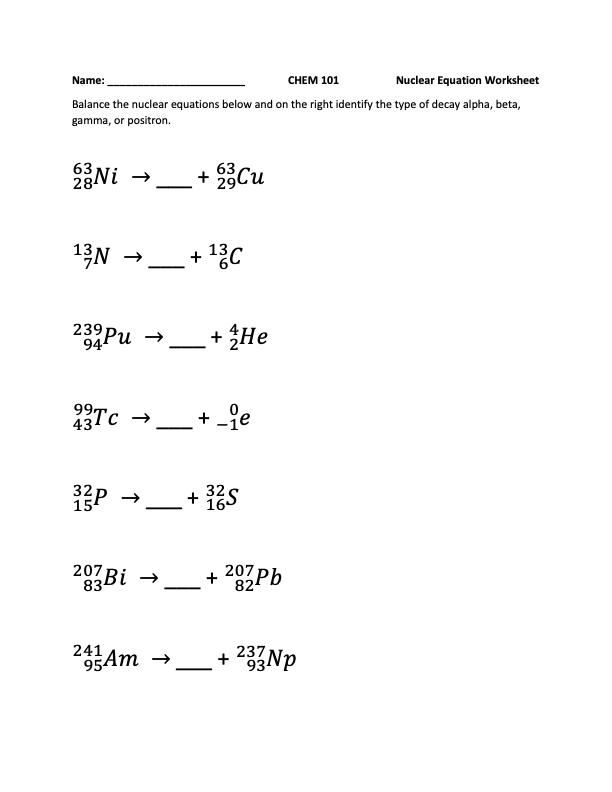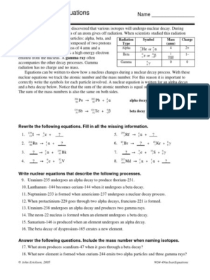 Nuclear equations are used to represent the radioactive decay of elements and isotopes. These equations are important in understanding the changes that occur within the nucleus of an atom. A nuclear equations worksheet with answers PDF can be a helpful tool for students to practice and master this concept.