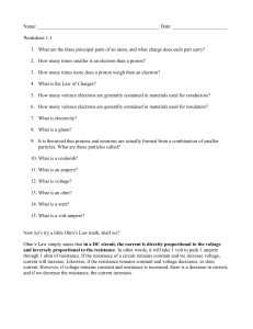 1. Calculate the current flowing through a resistor with a resistance of 10 ohms when a voltage of 20 volts is applied across it.