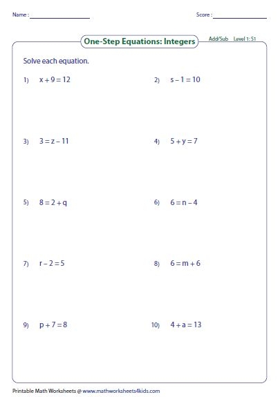 One step addition and subtraction equations worksheets provide a valuable resource for students to practice and enhance their skills in solving simple equations involving addition and subtraction operations. By utilizing these worksheets, students can improve their problem-solving abilities, develop critical thinking skills, and build a solid foundation in mathematics.