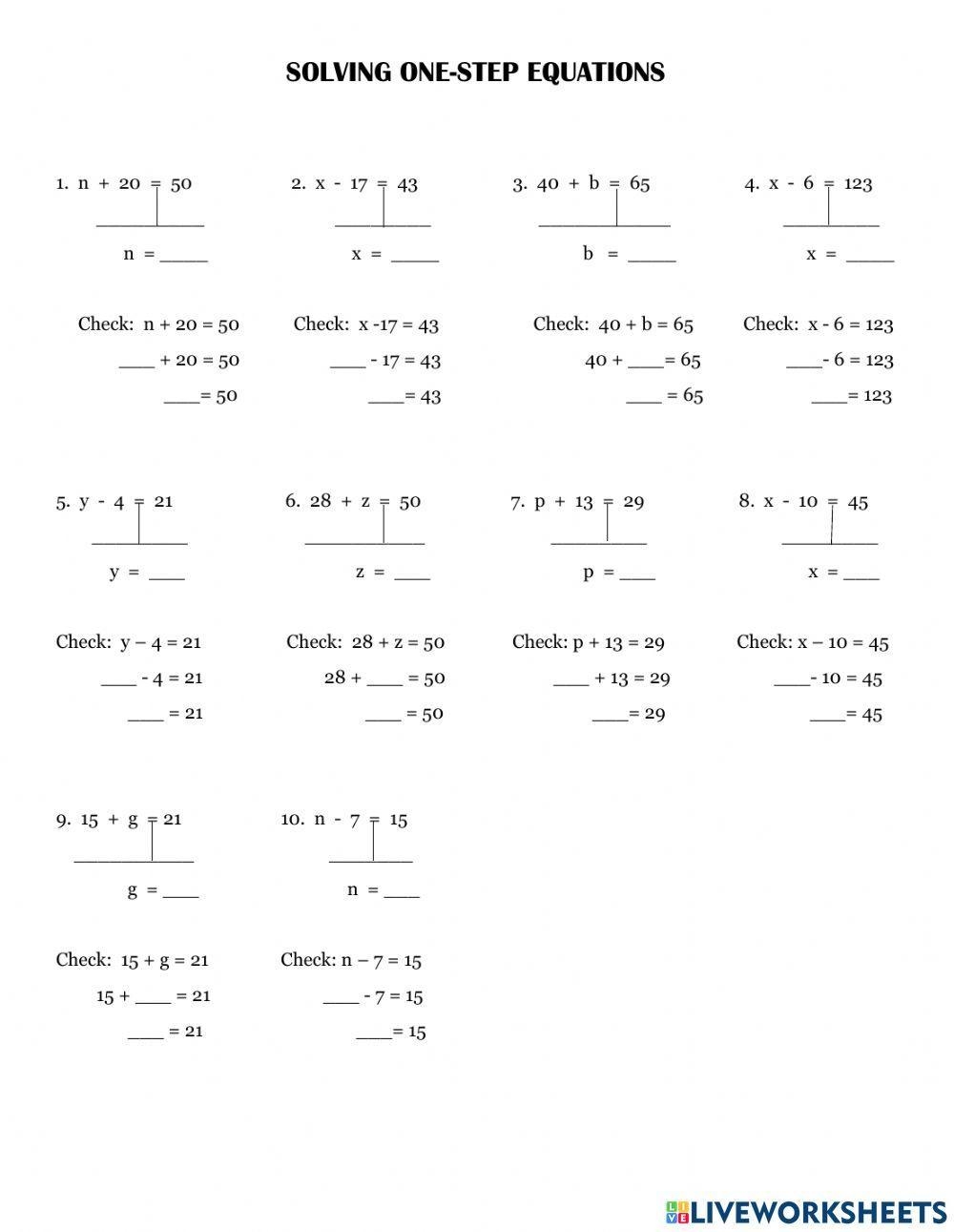 Benefits of One Step Addition and Subtraction Equations Worksheet