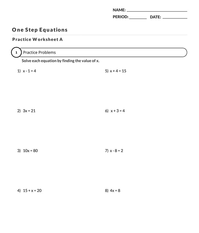 One step equation worksheets can also be used as homework assignments or extra practice for students who need additional reinforcement. By working on these worksheets outside of the classroom, students can further solidify their understanding of one step equations and improve their proficiency in solving these types of problems independently.