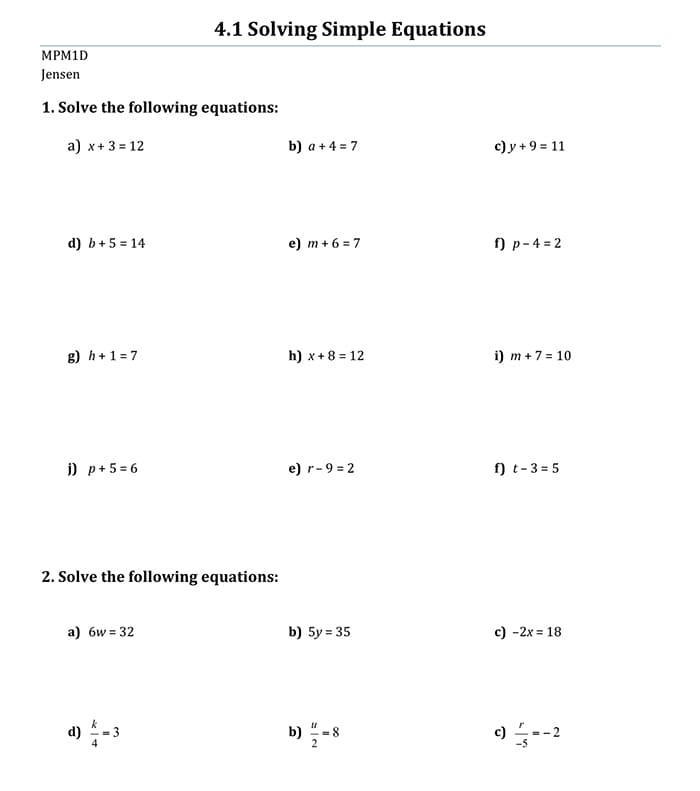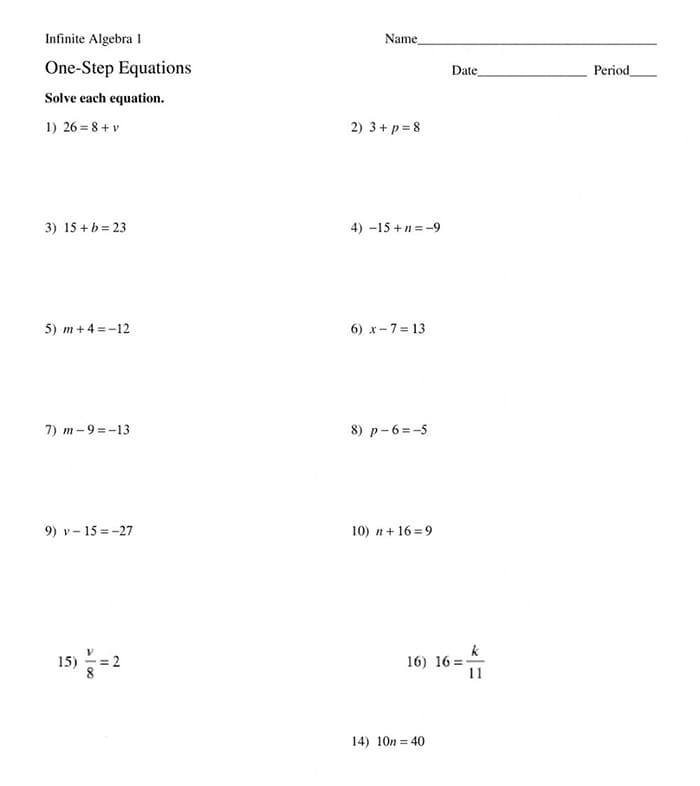 One step equations are a fundamental concept in algebra that students must master in order to progress in their mathematical skills. These equations involve only one operation, making them relatively simple to solve once students understand the basic principles. To help students practice and reinforce their knowledge of one step equations, teachers often provide them with worksheets that contain a variety of problems to solve.