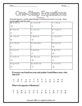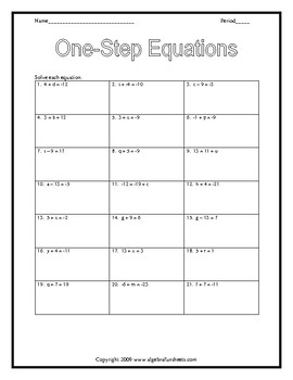 Solving One Step Equations By Adding Or Subtracting Worksheet TpT