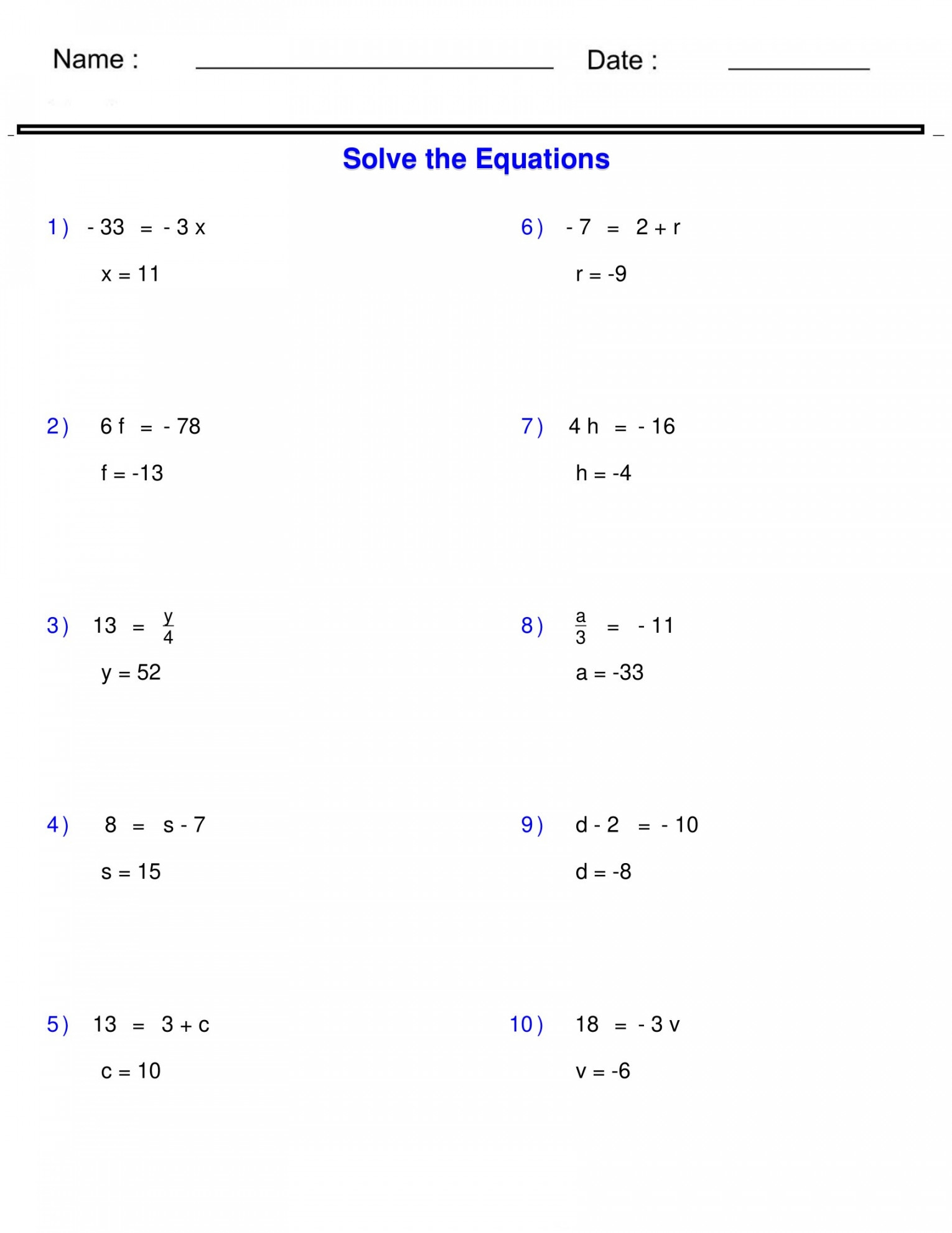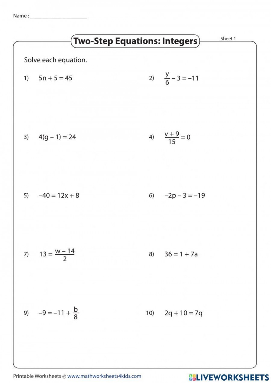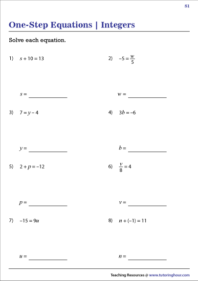 Moreover, worksheets can be a useful tool for teachers to assess their students’ progress and understanding of one step equations with integers. By reviewing students’ work on the worksheet, teachers can identify common mistakes, pinpoint areas of weakness, and provide targeted feedback to help students improve their problem-solving skills.