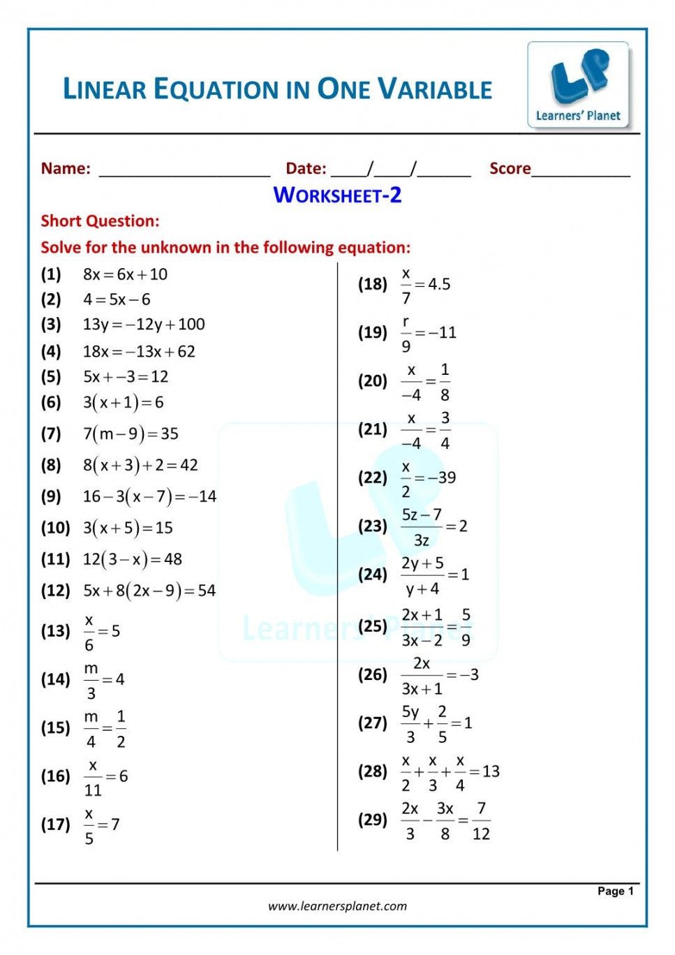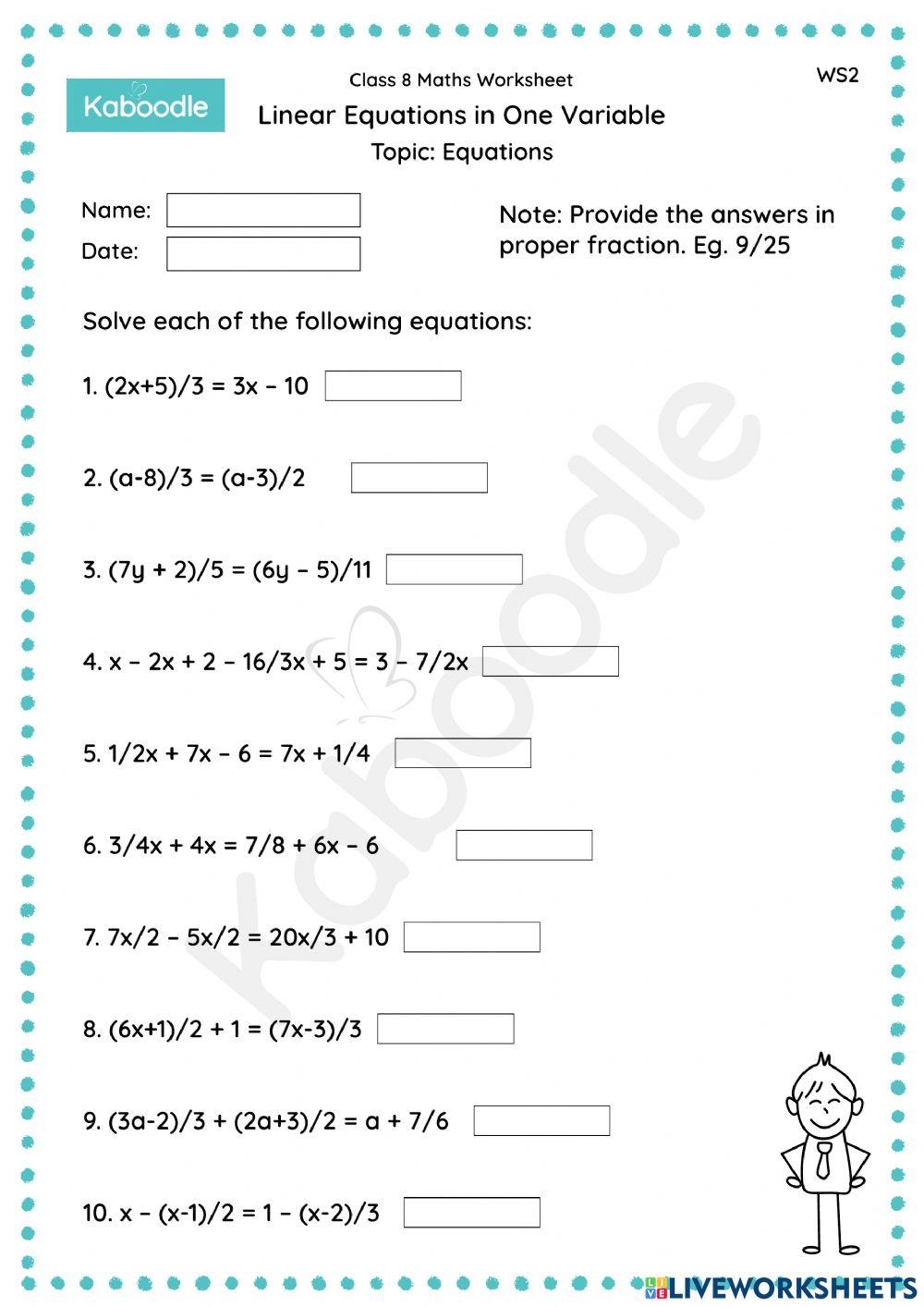 Overall, a one variable equations worksheet is an essential tool for students to practice and master algebraic concepts. By working through these worksheets, students can improve their problem-solving skills, enhance their understanding of algebra, and build confidence in their mathematical abilities. These worksheets provide a structured approach to learning and mastering one variable equations, setting a solid foundation for more advanced mathematical topics.