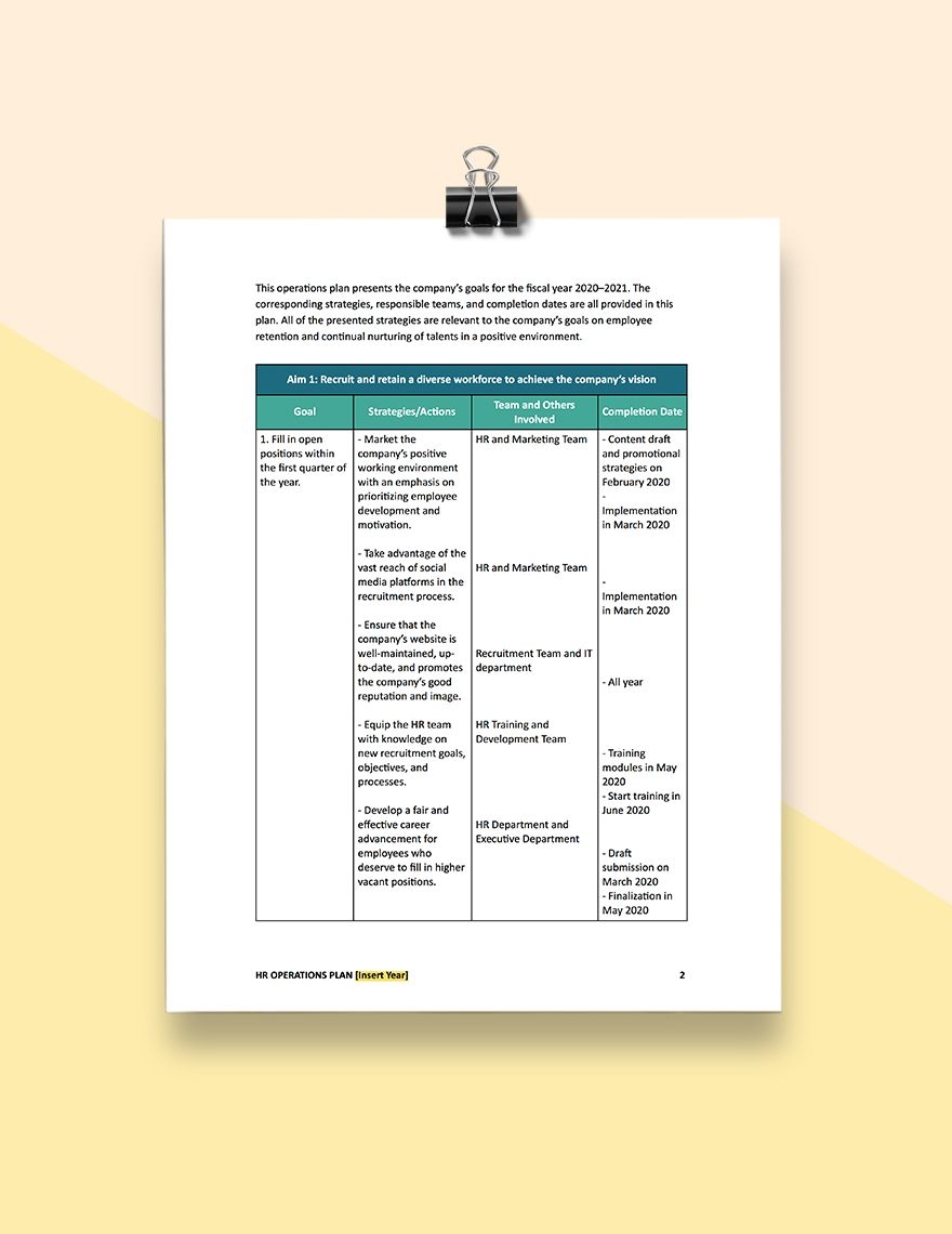 Operations Plan Template In Word Pages Google Docs Download