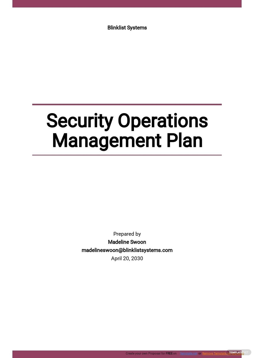 Security Operations Management Plan Template Google Docs Word Apple
